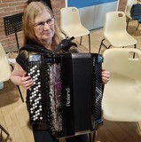 Notre amie Joelle qui est à l'initiative de cette belle rencontre, déjà pratique l'accordéon, et s'est particulièrement adaptée à celui de Denis. Pour notre prochaine rencontre, nous aurons la joie de l'écouter.