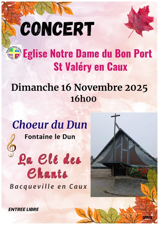 - Chapelle du Bon port à Saint Valery en Caux Dimanche 16 Novembre 2025 à 16H avec la chorale Choeur du Dun